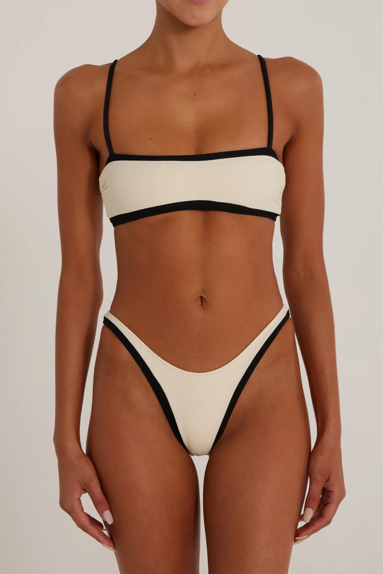 Our Bandeau Top with contrasting binding includes side boning for shape definition and a back hook closure.