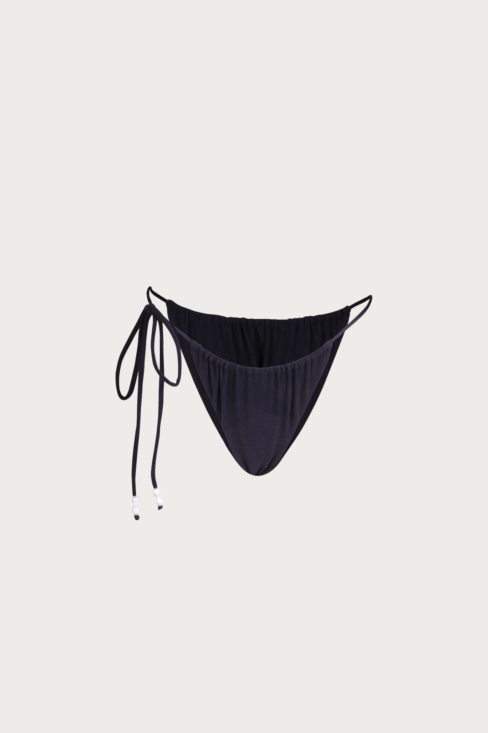 The Beaded String Bottoms with custom beads include extra-long single tie side. Scrunched fit for adjustable coverage.