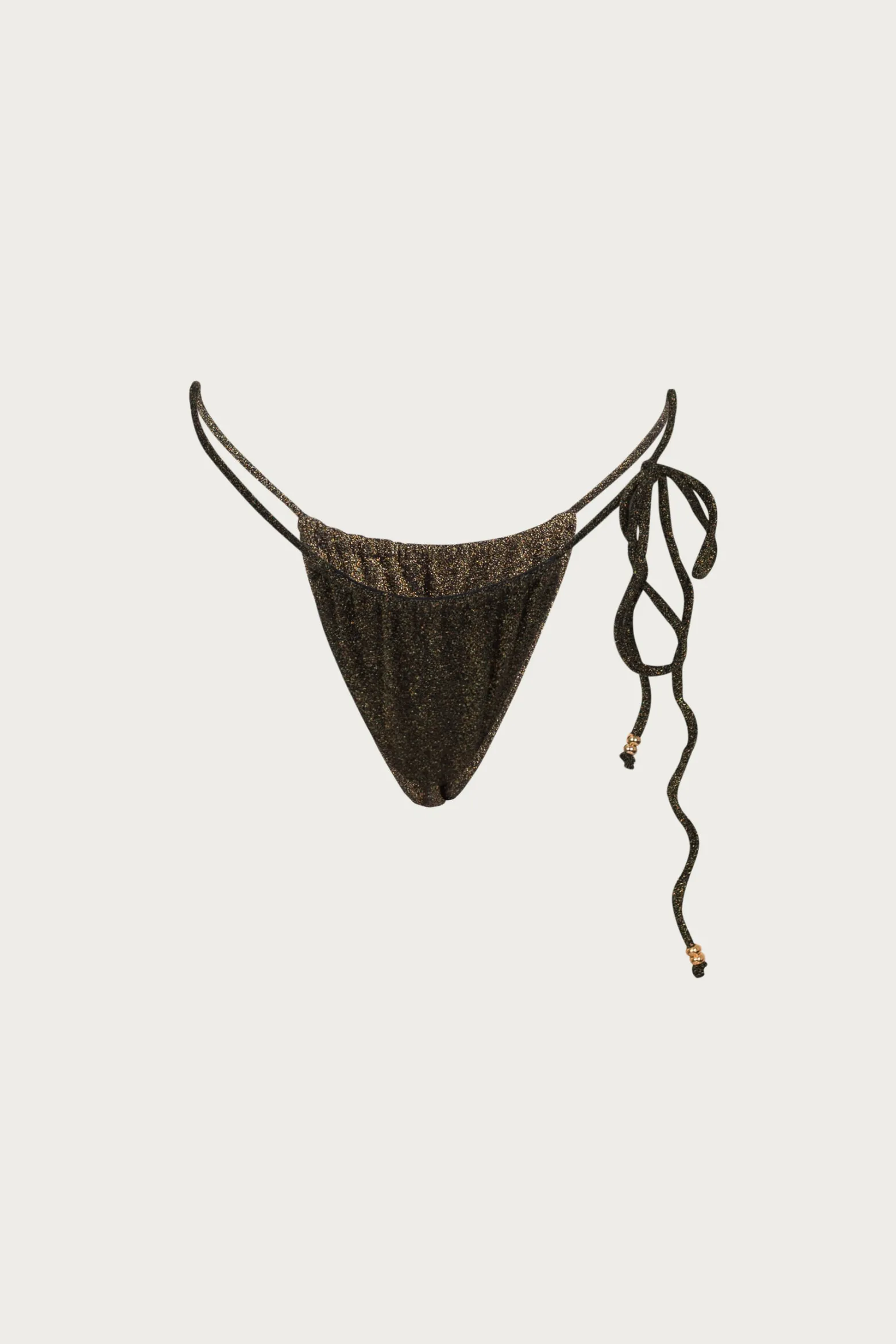 The Beaded String Bottoms with custom beads include extra-long single tie side. Scrunched fit for adjustable coverage.