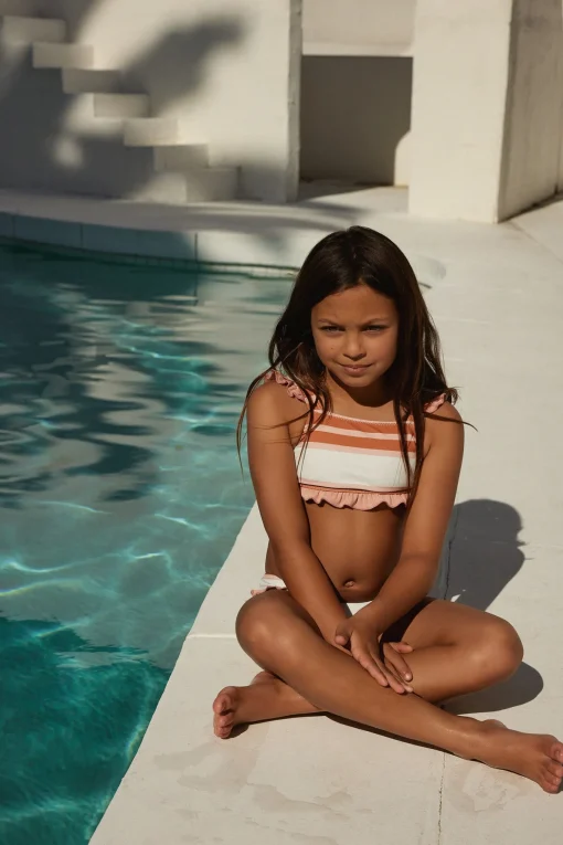 The ruffle bandeau top has a square neck with ruffle cap sleeves on the straps.DETAILS CARE – 83% Polyester, 17% Spandex…