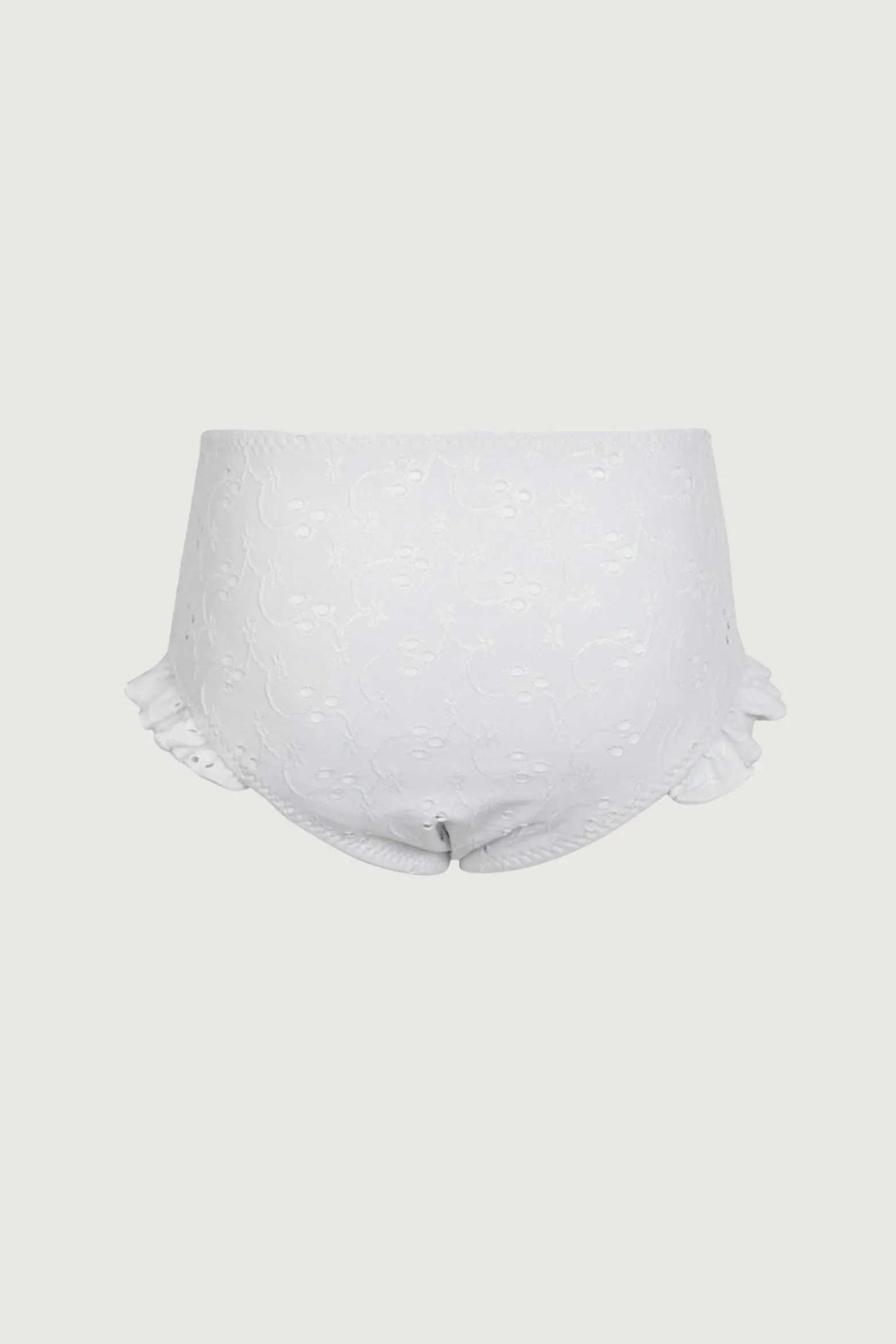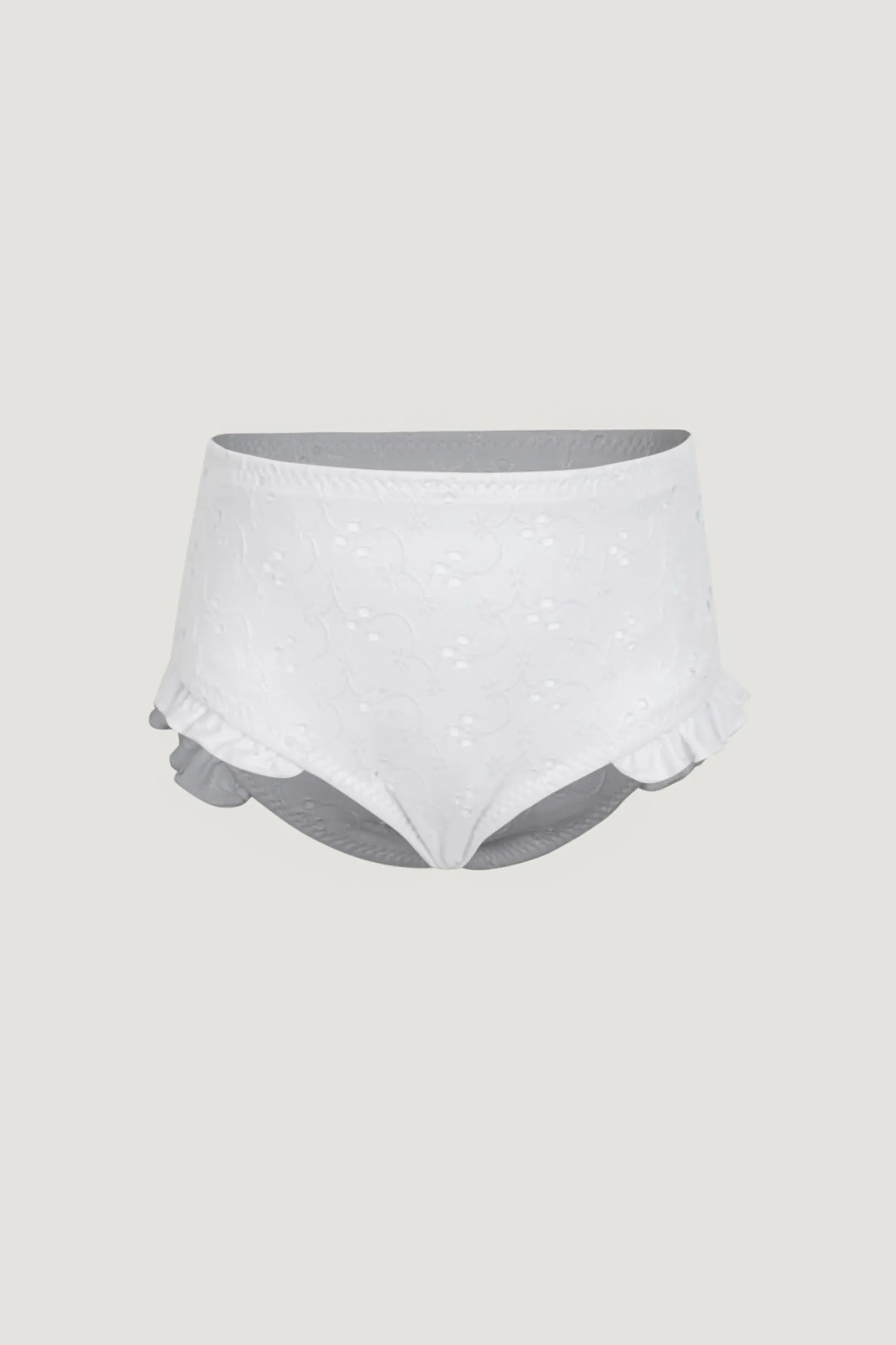 The swim bloomers has an elasticizes waist and fits over a swim diaper. Mix and match with the rashguard of your choice.