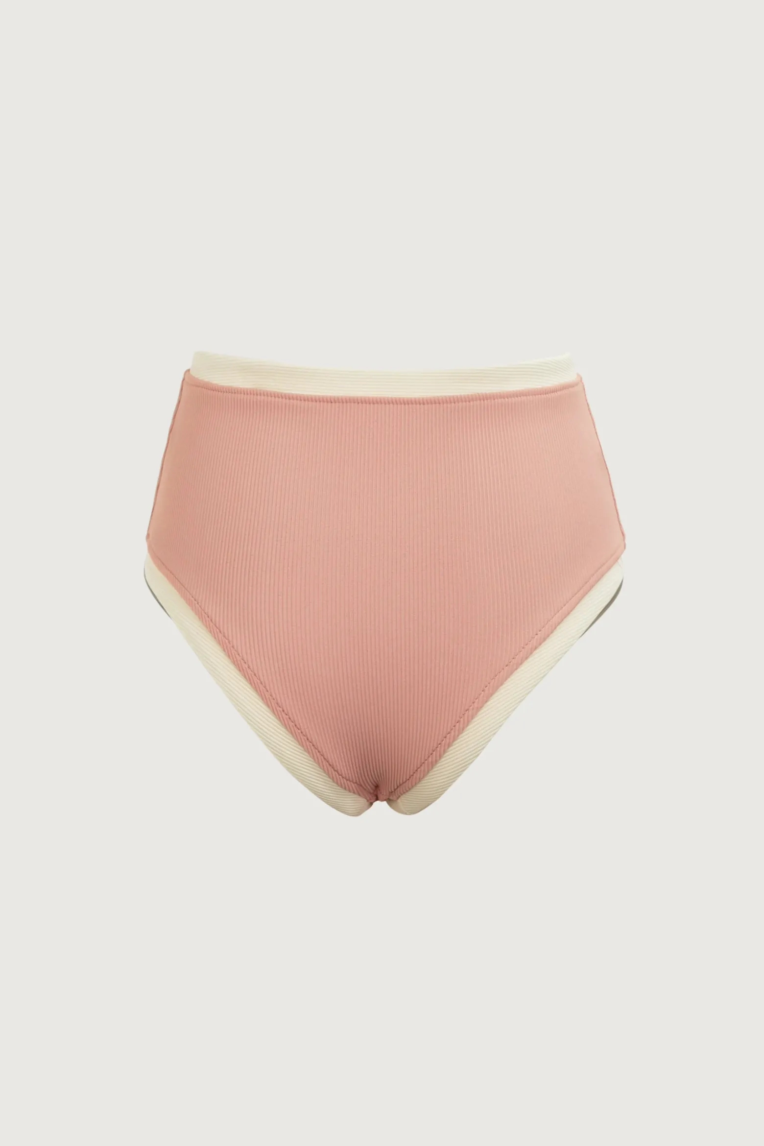 The Grace High Rise is a modern take on vintage swimwear with contrasting trim and a button front.