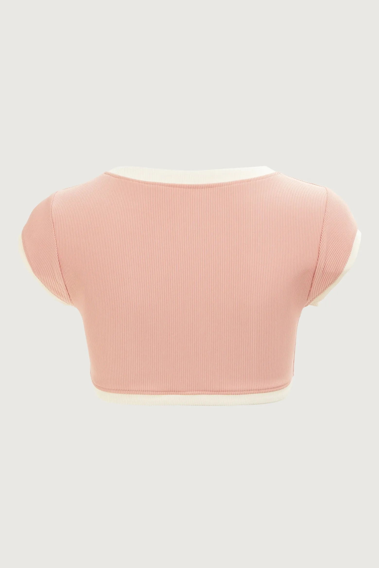 The Grace Top is a modern take on vintage swimwear with contrasting trim and a button front.