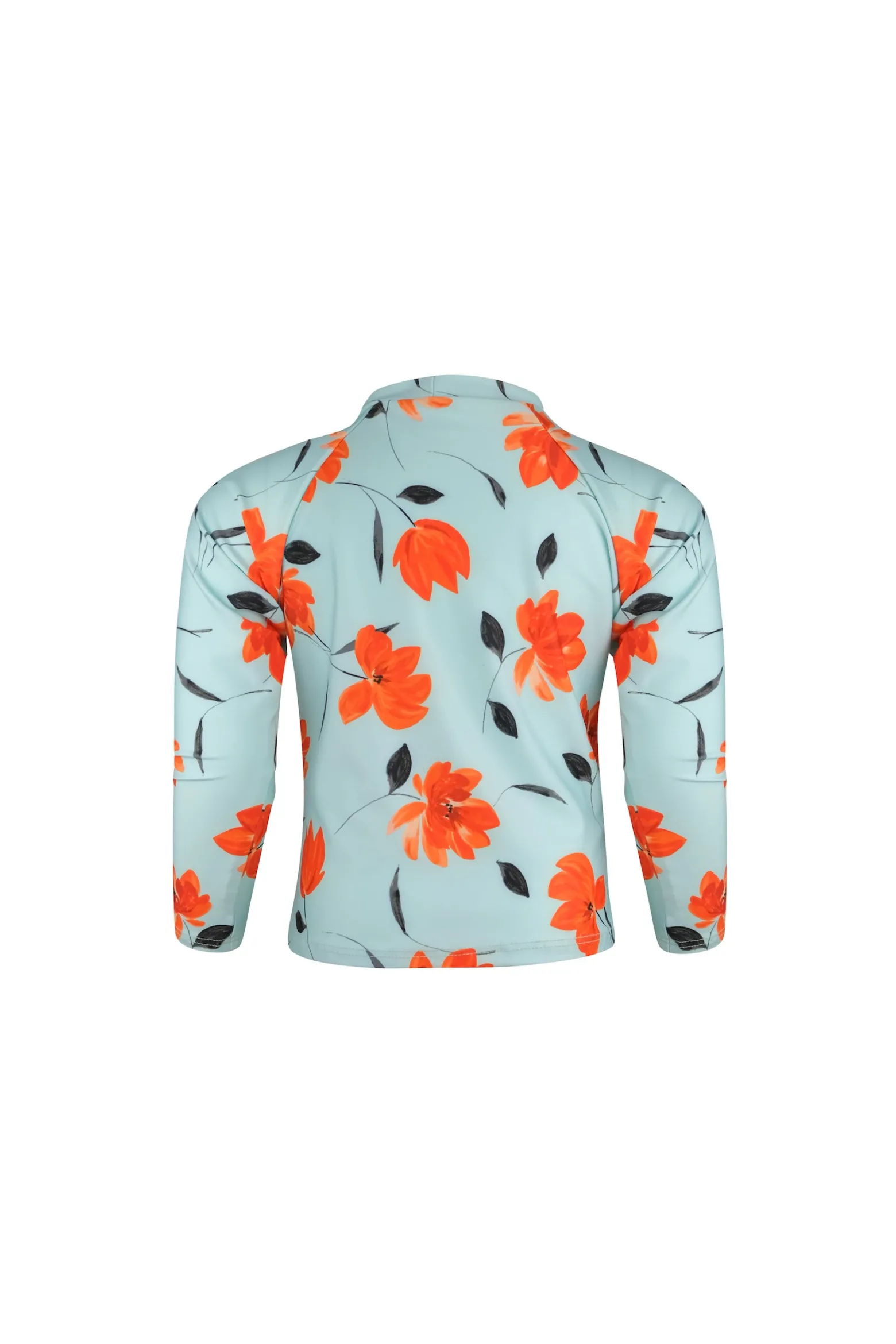 The unisex rashguard is unlined for a lighter feel, is a closer fit for extra coverage while allowing for plenty of movement. Rest assured knowing your mini is sun-safe.