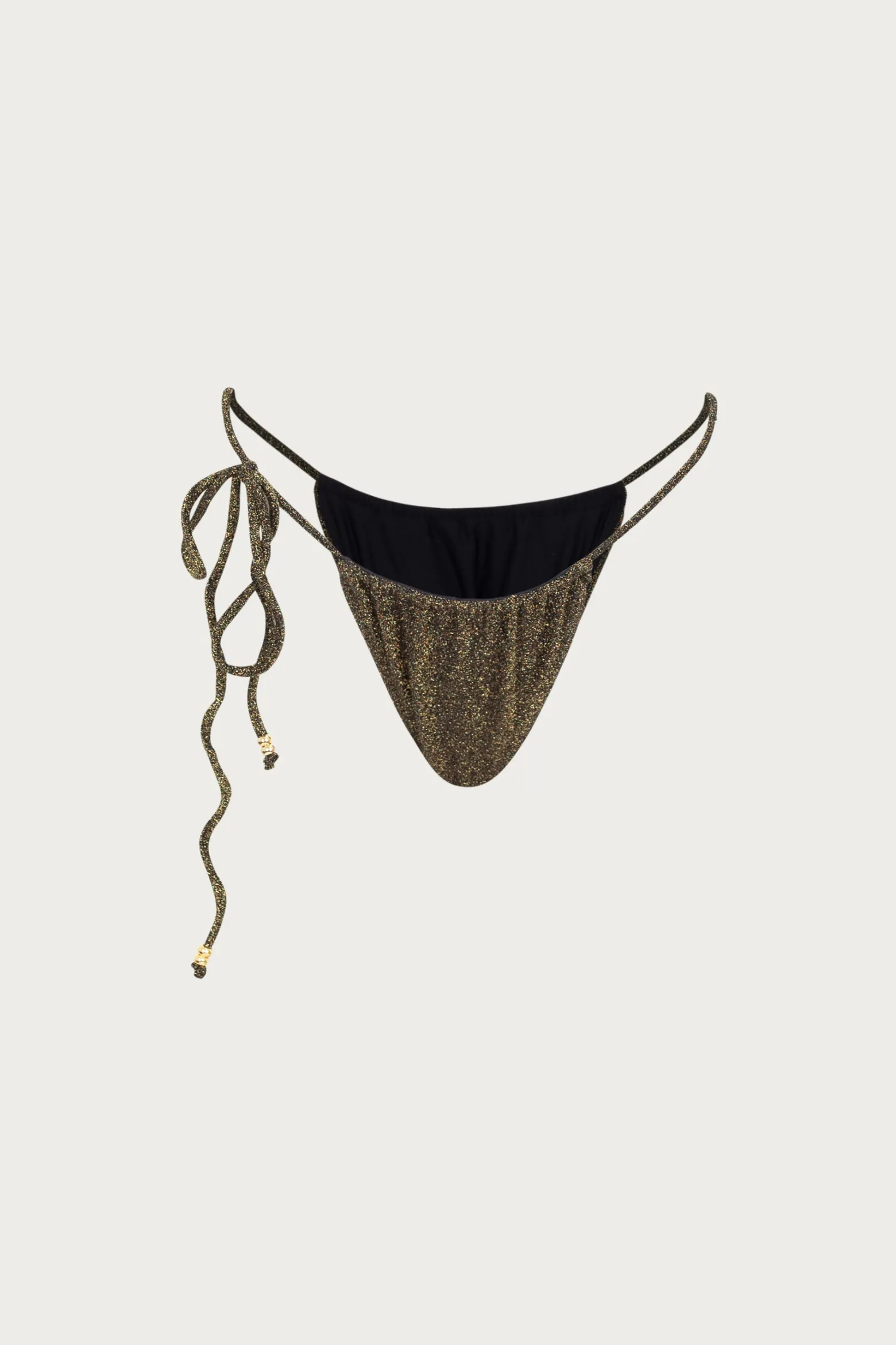 The Beaded String Bottoms with custom beads include extra-long single tie side. Scrunched fit for adjustable coverage.