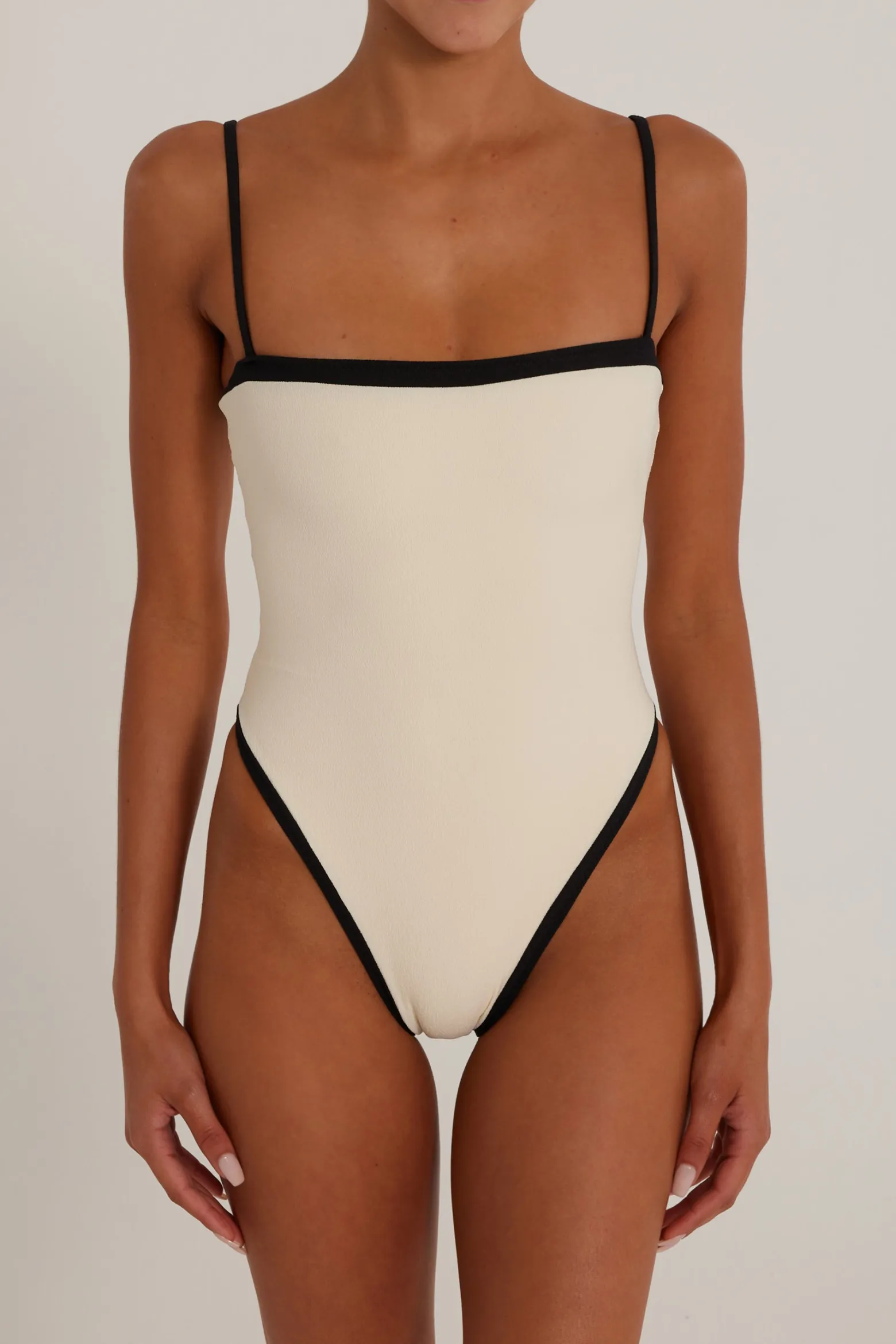 Our classic one-piece with chic contrasting trim.DETAILS – Adjustable straps- High-cut leg- Cheeky coverageCARE- 80% Pol…