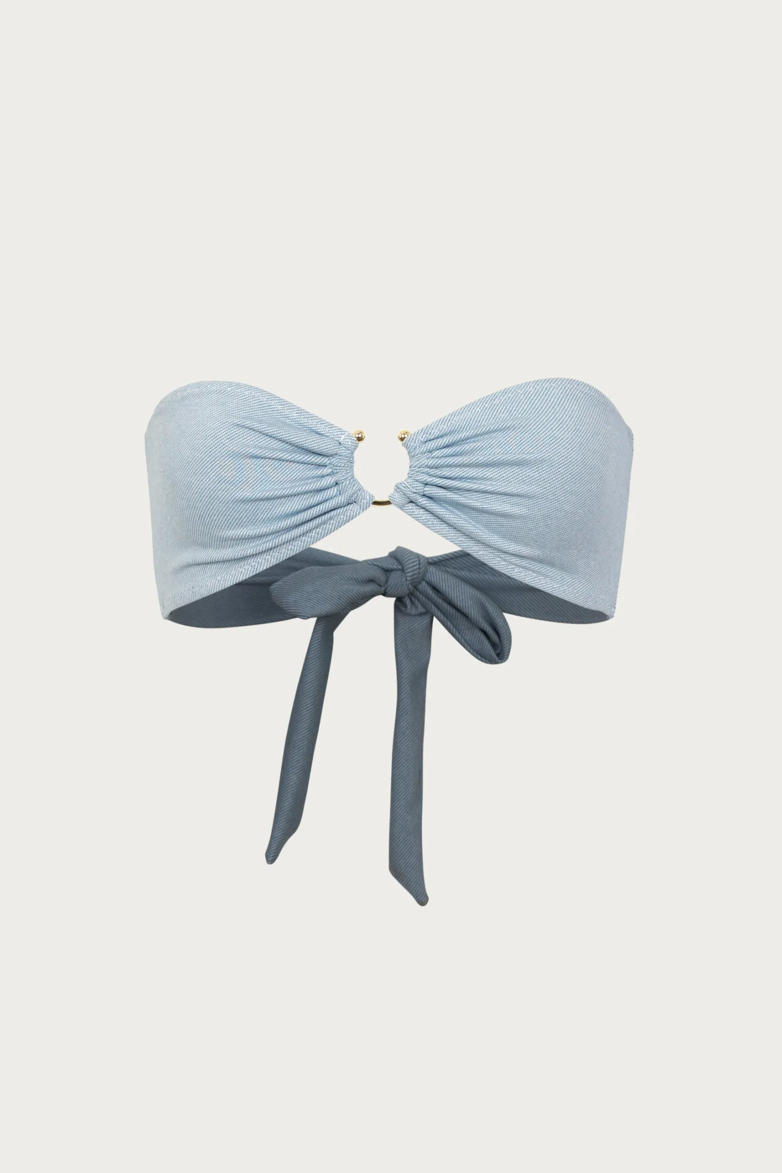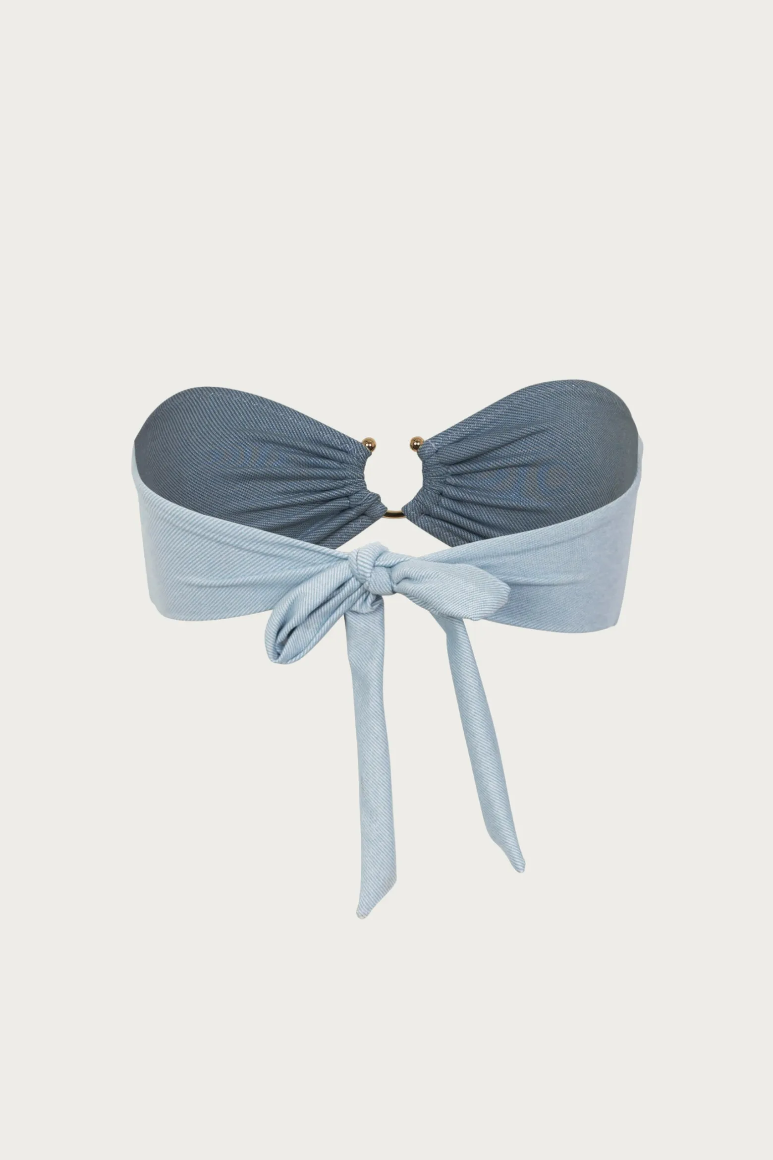 We have elevated your basic bandeau with an alternative to your typical swim hardware and an adjustable back tie for t…