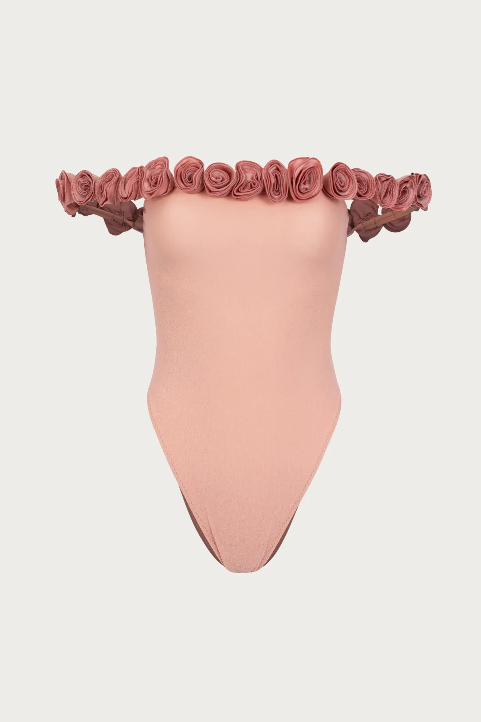 Our Rosette Off Shoulder One Piece with over 30 hand-made rosettes.DETAILS – Hand made rosette detail- Off shoulder nec…